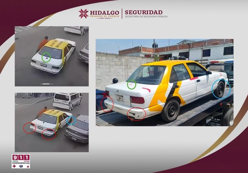 Mediante labores de inteligencia e investigación del Centro de Control, Comando, Comunicaciones, Cómputo, Coordinación e Inteligencia (C5i) de Hidalgo, se llevó a cabo un despliegue policial en el municipio de Tulancingo, para localizar el taxi relacionado con la agresión al personal de la Secretaría de Movilidad de Hidalgo (Semoth).