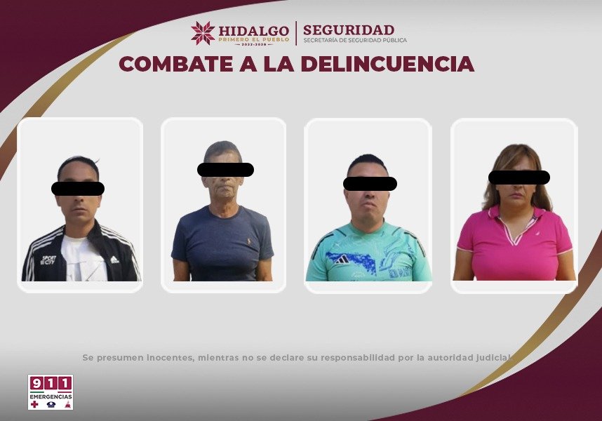 En seguimiento a labores de investigación e inteligencia operativa, agentes de la Secretaría de Seguridad Pública de Hidalgo (SSPH) lograron la captura de tres hombres y una mujer, quienes, se presume, están relacionados con los robos cometidos en dos consultorios médicos de Pachuca y Actopan.