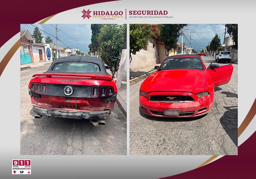 Los hechos ocurrieron en la colonia Centro del municipio de Zapotlán, donde se intervino un vehículo Ford Mustang, color rojo, el cual transitaba sin la defensa trasera y con una sola placa de circulación del estado de Tamaulipas.
