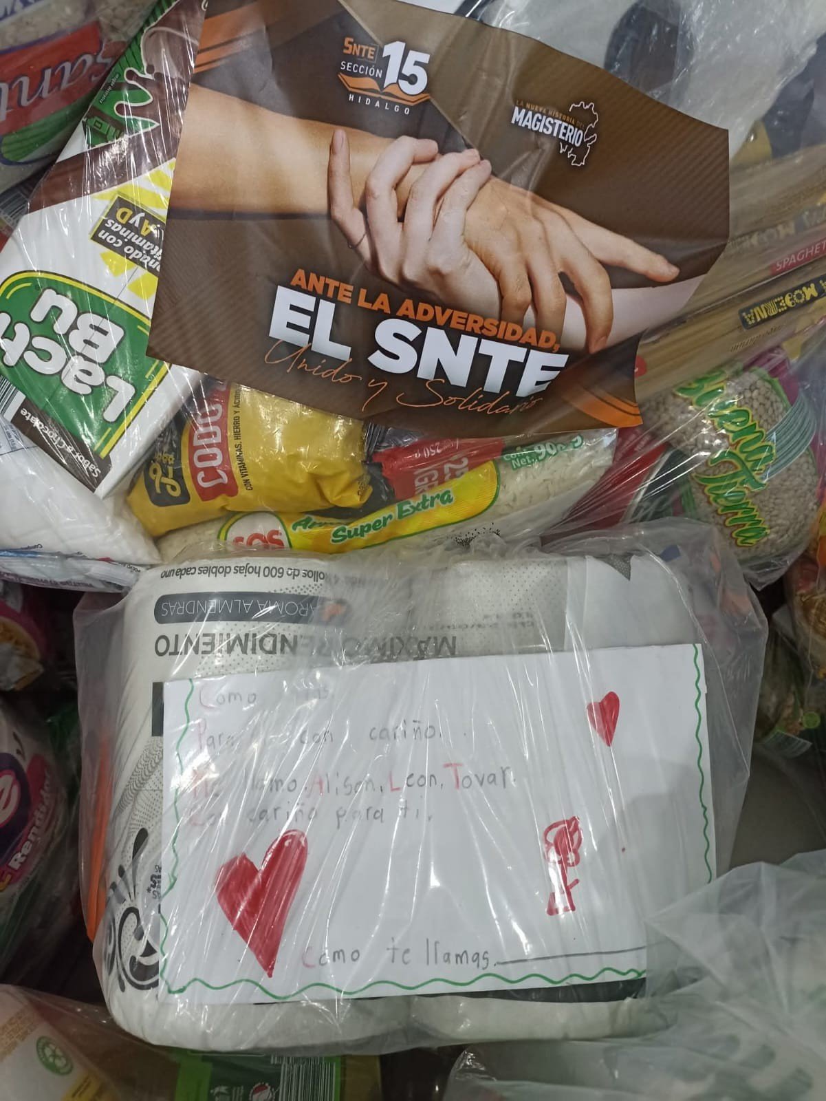 Además, junto con las despensas, se envian cartas elaboradas por los niños y las niñas de las escuelas, quienes con gran cariño expresaron mensajes de ánimo y esperanza para las familias que recibirán este apoyo.