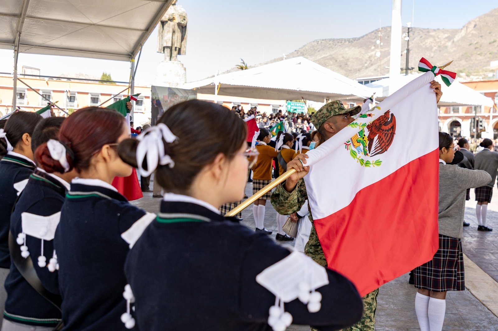 El gobernador Julio Menchaca encabezó la ceremonia cívica conmemorativa del Día de la bandera, símbolo de honor, integridad, soberanía y orgullo nacional.